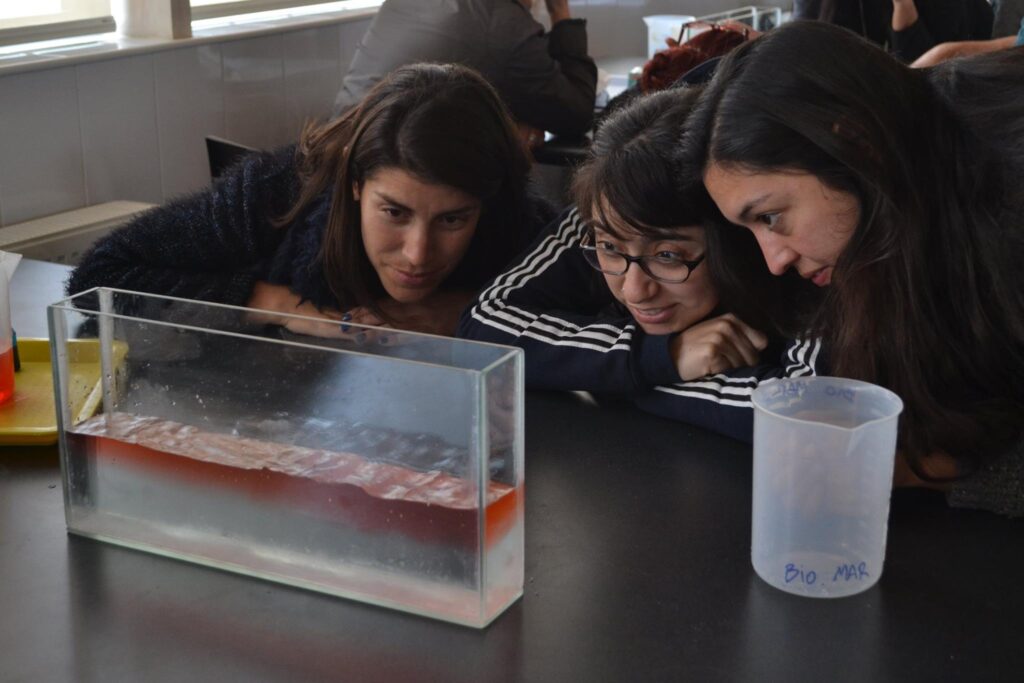 En total fueron 6 talleres presenciales -y cerca de 50 horas de capacitación- en las que se compartieron conocimientos de las ciencias del mar y se trabajó en el diseño de actividades didácticas para la sala de clase. Estas actividades fueron diseñadas de forma tal que aportasen al cumplimiento de los objetivos de la malla curricular, y fortalecieran habilidades y actitudes que ayuden a entender la influencia del océano sobre el ser humano y del ser humano sobre el océano.